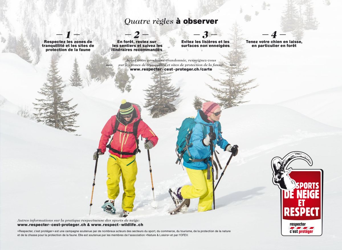 L’hiver est une période critique pour les animaux comme les chevreuils, chamois, tétras-lyres ou lagopèdes. La moindre fuite leur coûte une énergie précieuse. Même à allure lente, notre passage peut les déranger.