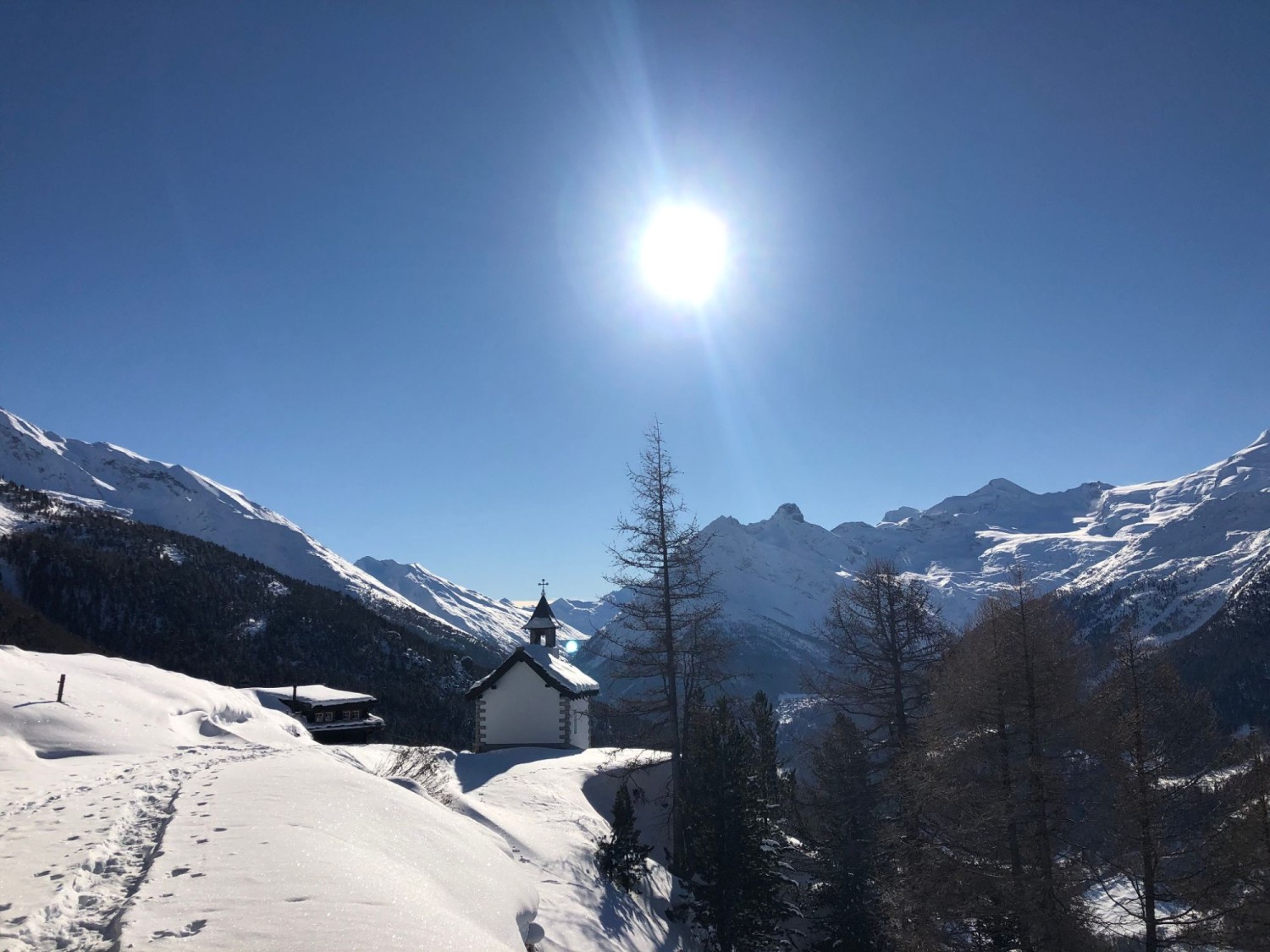 Sur le Heimischgarte-Trail, la Vallée de Saas se montre sous son jour le plus paisible. Cette magnifique randonnée en raquettes au-dessus de Saas-Balen traverse la réserve forestière naturelle enneigée « Löübinobodme » et offre une vue sur un paysage de montagnes et de glaciers à couper le souffle.