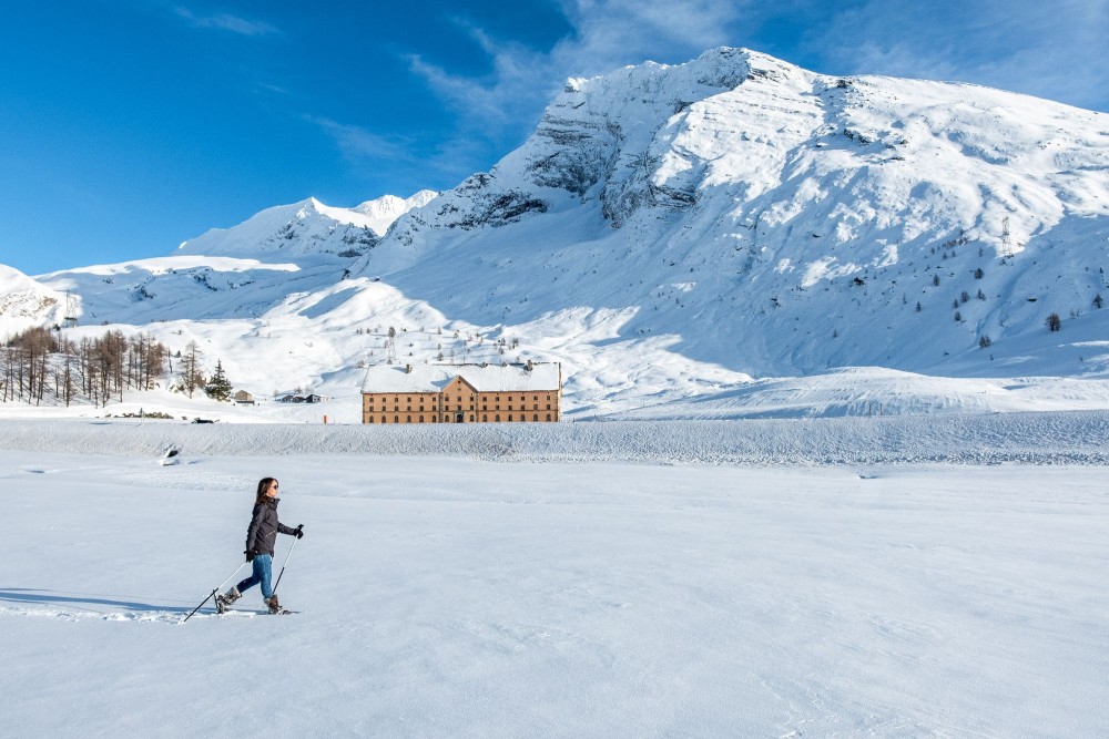 Aujourd’hui, la route du col qui suit en grande partie le tracé de la route napoléonienne est praticable toute l’année et constitue le point de départ de la randonnée en raquettes. L’itinéraire débute peu après l’hôtel Monte Leone et serpente à travers le haut plateau enneigé. On passe régulièrement devant des petits lacs gelés qui se nichent dans des cuvettes autrefois modelées par les glaciers.