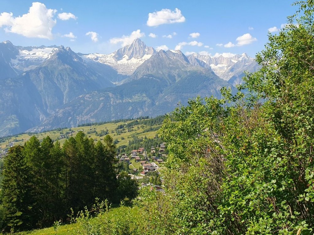 Nous pénétrerons une forêt lumineuse, peuplée d’épicéas et de mélèzes, avant de suivre le paisible bisse « Alte Eischlersuon ». Puis, à mesure que la forêt s’éclaircit, un magnifique sentier s’élève doucement jusqu’à Chumme, point culminant de la randonnée à 1'488 mètres d’altitude.