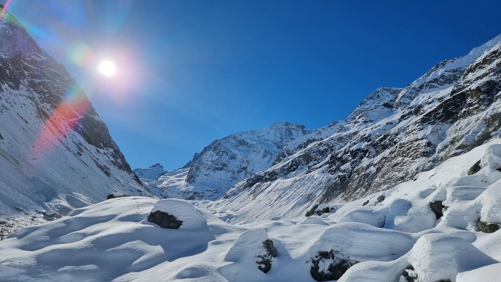 Au milieu d’un paysage féérique de montagnes enneigées, le col de passage historique mène à Sunnbüel. La grotte de Zinal est une grotte de glace formée à l’extrémité du glacier de Zinal.