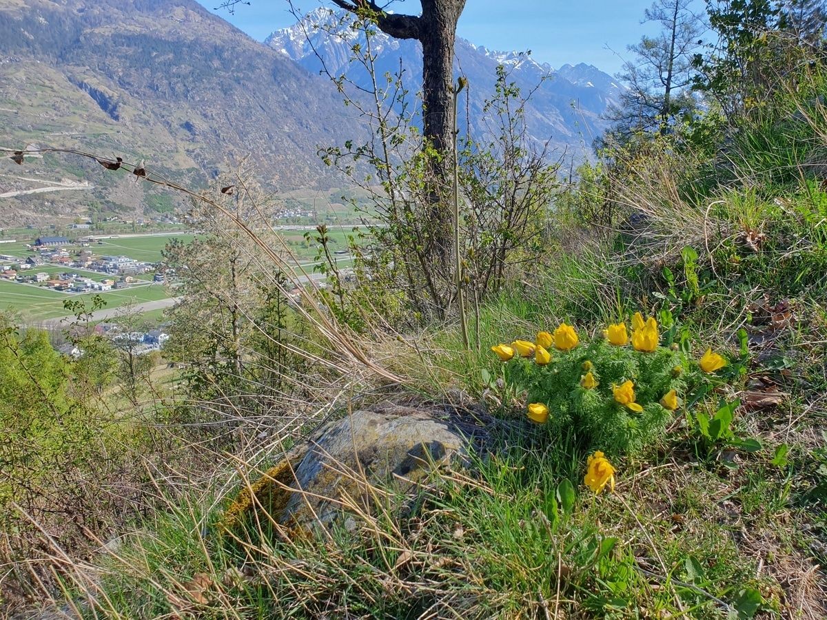 restent à découvrir... Après le village d'Unterems, la descente en pente douce passe par des fourrés vert tendre et de jolies prairies. Nous cheminerons le long du bisse Fätschi, puis remonterons au sud du village d'Ergisch. Le sentier traverse de vastes prairies puis