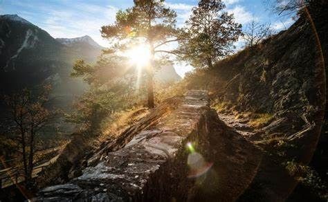 Leuker Sonnenberge : Nous entamons le chemin du soleil dans le pittoresque village d’Albinen, perché à flanc de coteau. Une petite promenade dans ses ruelles typiques s’impose. Le « Leuker Sonnenberge » traverse ensuite les charmants villages de Guttet, Feschel, Erschmatt et Bratsch, avant de redescendre vers Gampel par un agréable chemin de montagne bien aménagé.