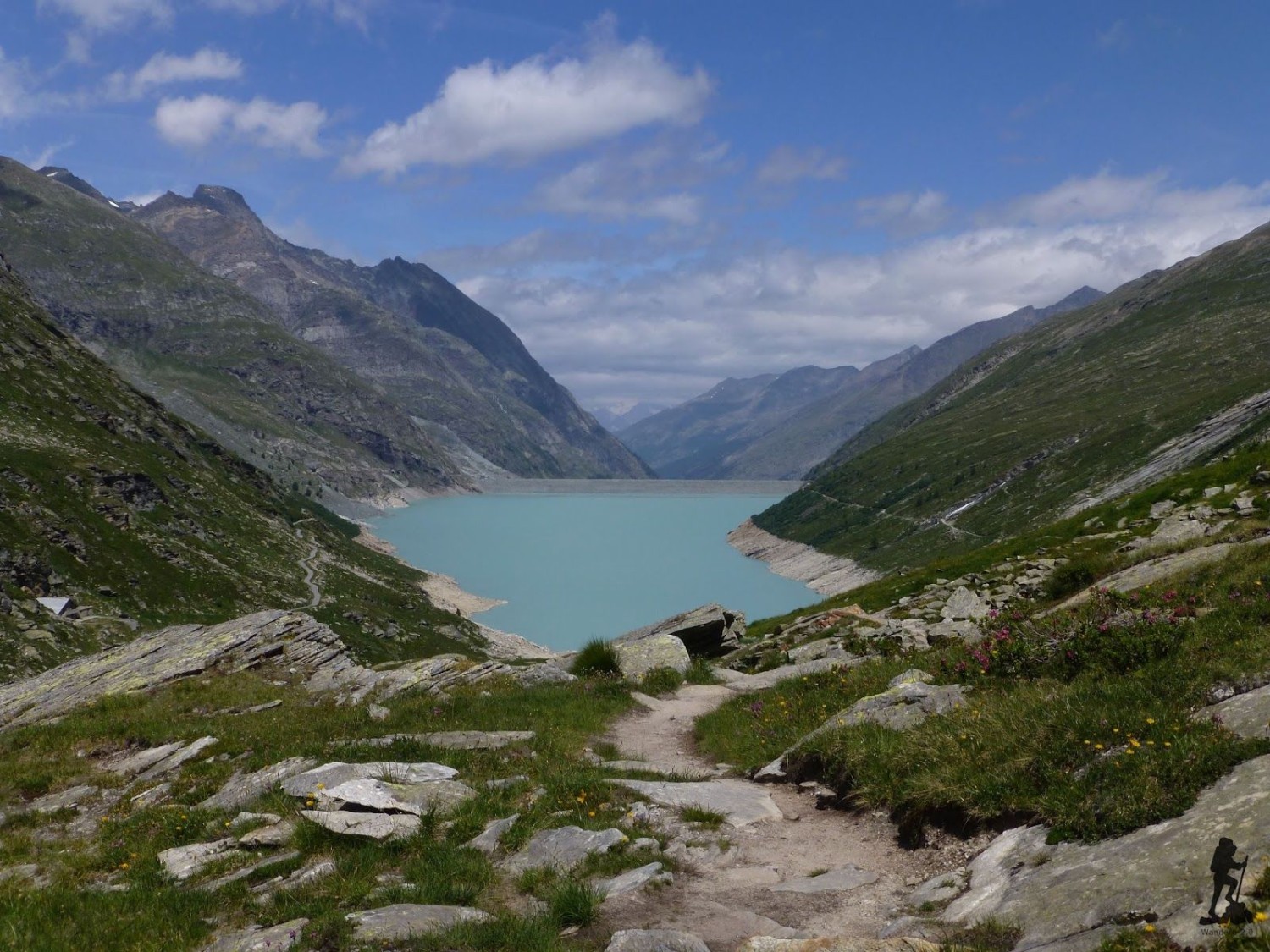 Le retour vers Mattmark s'effectue par le même chemin, en passant cette fois-ci par le côté droit de la vallée du lac de retenue et, à la fin, par l'imposante crête du barrage.